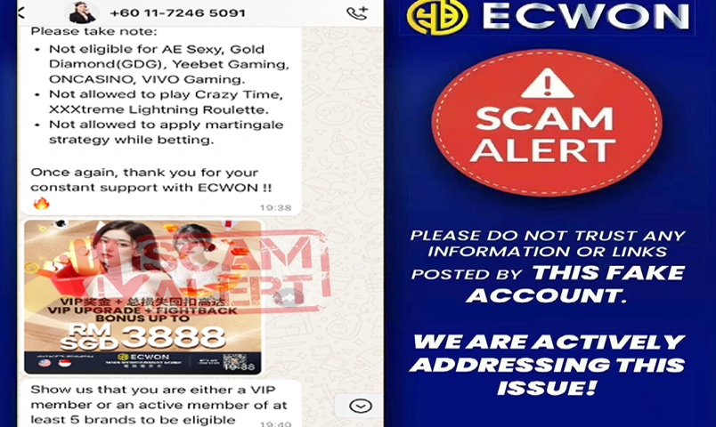ECWON hereby clarifies that we has no relationship with this WhatsApp account "+60 11-7255 1146". We do not authorize any related information to this WhatsApp account.